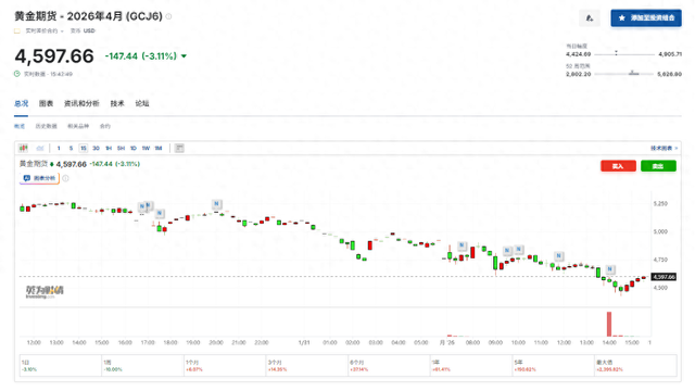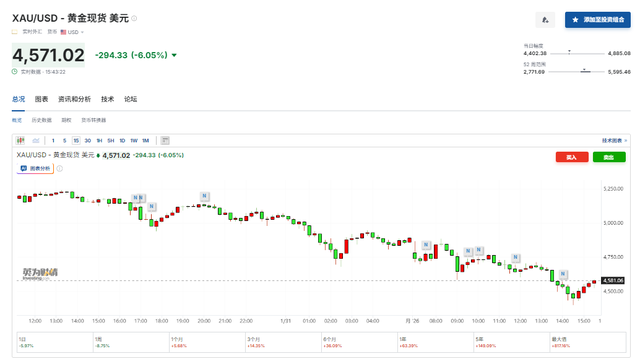 在上周特朗普公布下一任“美联储掌门”后,国际金价、银价大幅跳水。截至发稿,现货/期货黄金均已失守每盎司4600美元关口。现货白银日内跌超15%报71.5美元/盎司,较历史高位回落50美元,仅三个交易日抹平一个月涨幅。