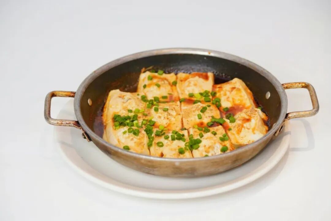 煎得两面金黄的豆腐塞满肉馅