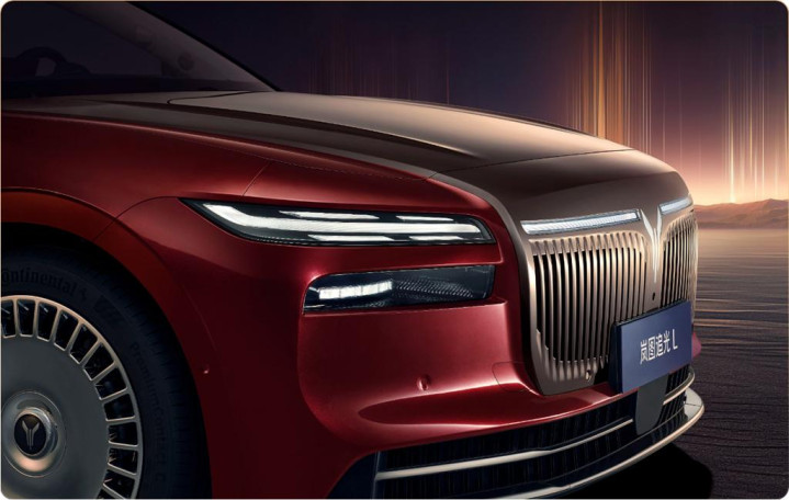 岚图追光L的前脸极具视觉冲击力,标志性的鲲鹏展翼风格,搭配扶摇直上前格栅与积水三千大灯,给人不怒自威的感觉。搭配红色与金色双配色,进一步增强了气场。此外,岚图追光L的车身尺寸也非常可观,新车的长/宽/高分别为5125mm/1985mm/1522mm,轴距则达到了3010mm。